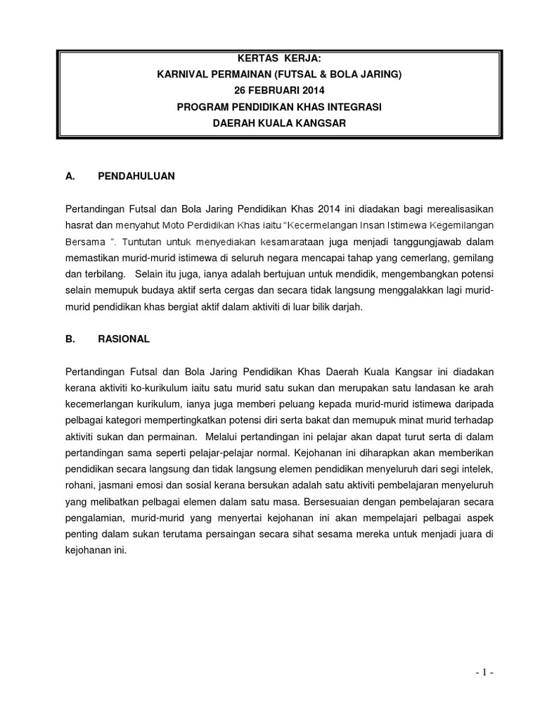 Kertas Kerja Karnival Futsal Bola Jaring Pdf